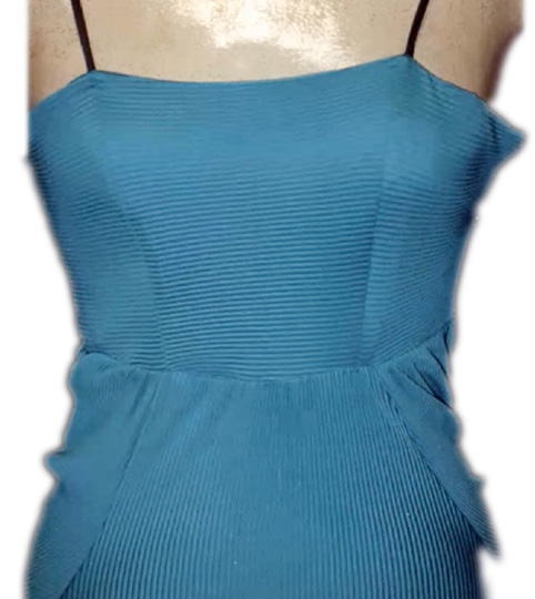 “My wife, who is a fashion designer, had been working on a peculiar womens dress completely made by pleated tissue material (plissé is the commonly known French word). The upper part had horizontal pleats to smoothly adapt to the shape of a narrow waist, while the lower part (corresponding to the skirt) had vertical pleats that would naturally open and close with the leg movements.