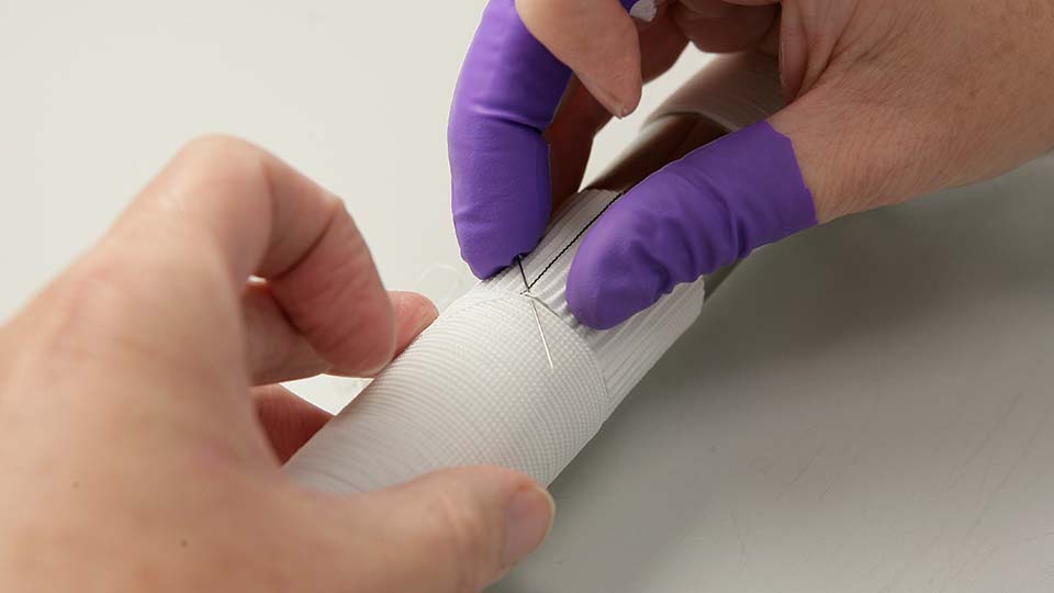 Pictured left: Gelweave™ Valsalva being hand sewn by Kerry Lochrie in Glasgow.